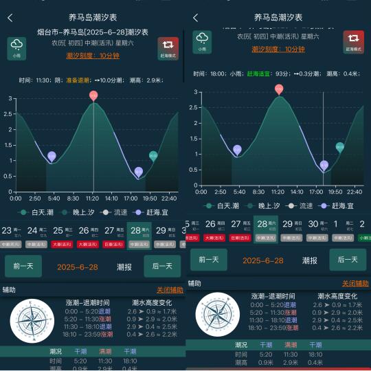 📍6.28号:看海拍照时间9-14.20,中午11.30满潮(水最多)