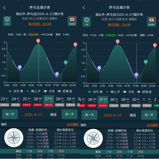 📍6.30号:看海拍照时间10.50-15.50,中午13点满潮(水最多)