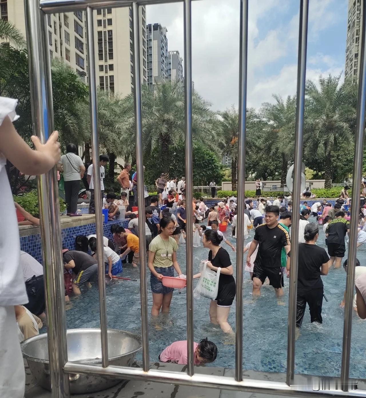 广东清远几场暴雨过后,北江水位暴涨。这几天雨停了,水位也渐渐退去。 短暂的清凉过后,又开启了炎热的夏天模式。 我们小区今日举行了别开生面的泳池开张仪式--捕鱼亲子活动。 在清澈的泳池里先放入100多条大鱼和几十斤泥鳅,然后每家每户都老少全家出动,开始徒手捕捉。 几百人同时涌入泳池,真是又热闹又清凉。泳池里的鱼和泥鳅被吓得四处乱窜。 很快就有街坊抓到了第1条大鱼,举起来大声炫耀,大家看了都深受鼓舞,抓鱼的劲头越来越大。 小孩更是开心极了,一边抓鱼一边玩水,完全忘记了衣服裤子已经全部湿透。 这个活动真是太有意义了,抓到鱼和泥鳅的街坊们都说中午的菜又有着落了,同时还促进了邻里之间的感情。 我家也收获不小,抓到一条大鱼和20多条泥鳅。