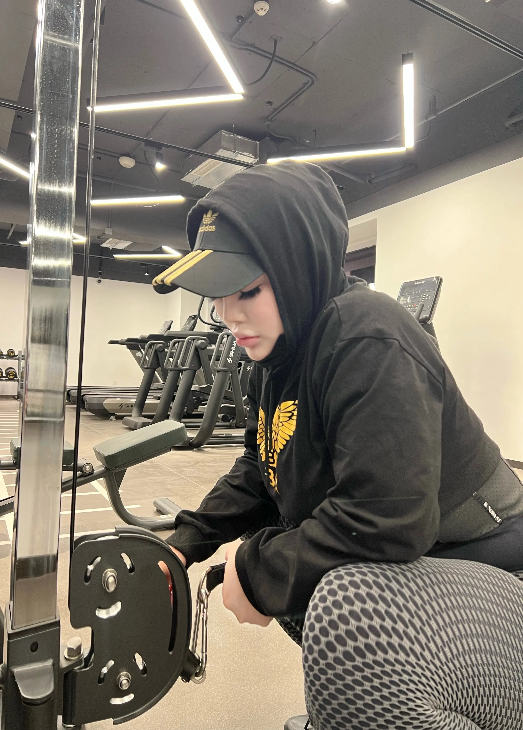 GymOOTD.🧢:Adidas(适合拍照 不适合日常佩戴) 卫衣:Boy (0弹力不会再买) 健身裤:某宝 (穿了几次松了没有回弹力) 鞋子:Nike (适合摆拍不适合专业训练)