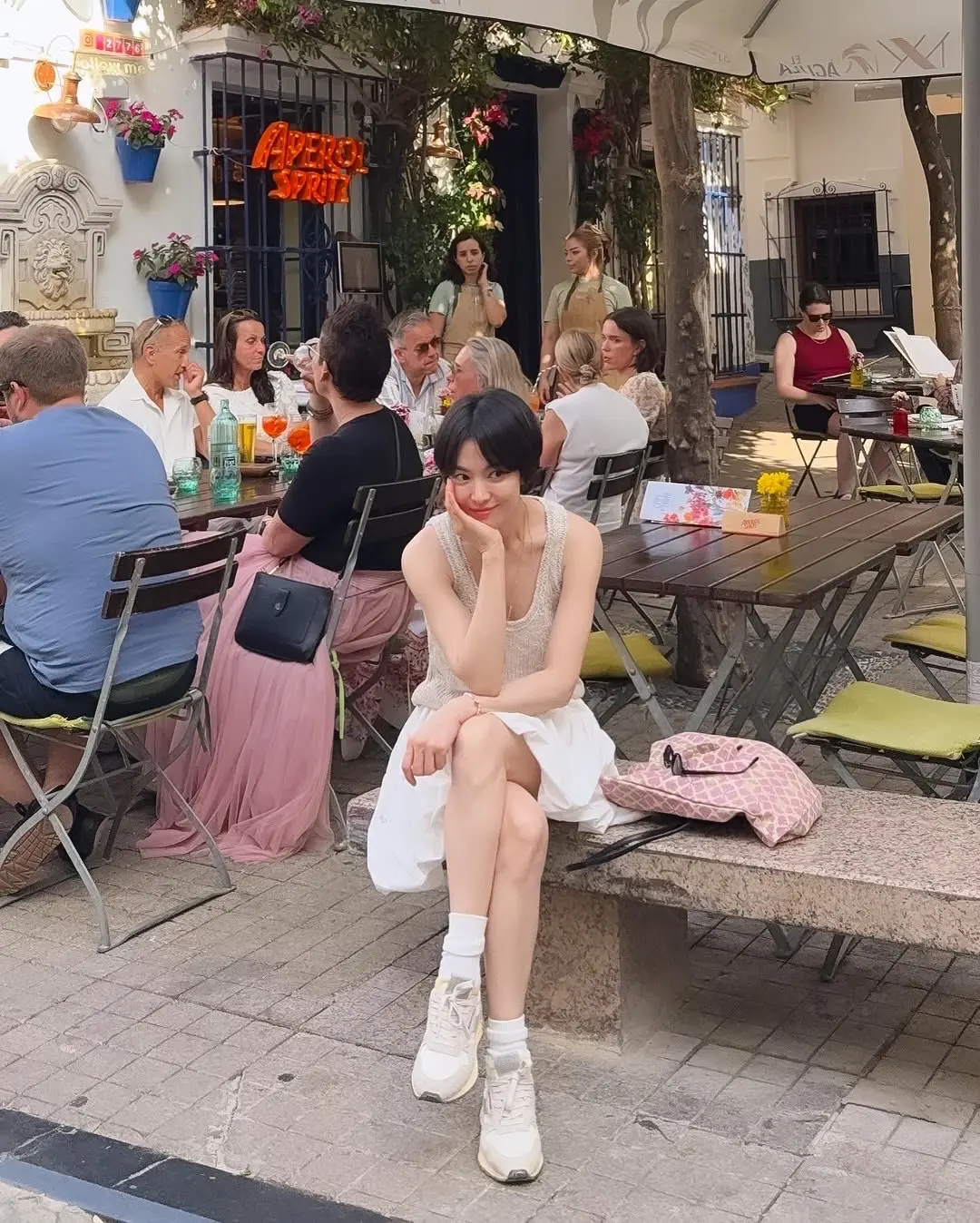 陈妍希在餐厅吃饭,素颜都好漂亮。