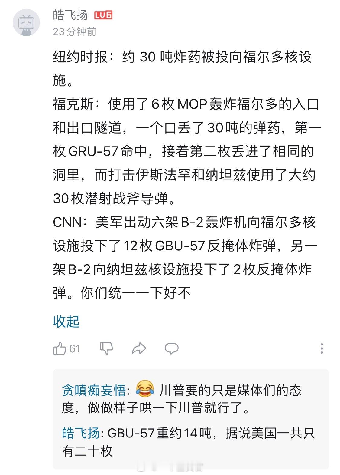 你们统一点行吗?[允悲]特朗普就袭击伊朗核设施发表讲话美国袭击伊朗核设施