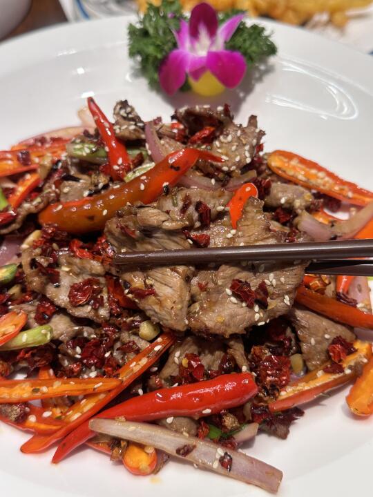 环境很高级、且具有私密性、 巨适合生日,相亲或者纪念日 几百的套餐还有生日布置(不用动脑适合懒人 推荐他们家封神雪花牛肉爆胸口油一定要点、是道广东菜特别香辣。 还有椒盐野生沙虫、株洲只有他们家有,特别香脆还有点弹性、高蛋白的一道菜!