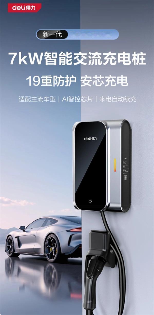 传统办公文具巨头得力正式进军新能源领域,推出旗下首款家用新能源充电桩,支持7KW