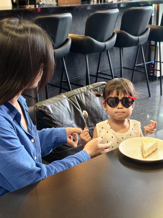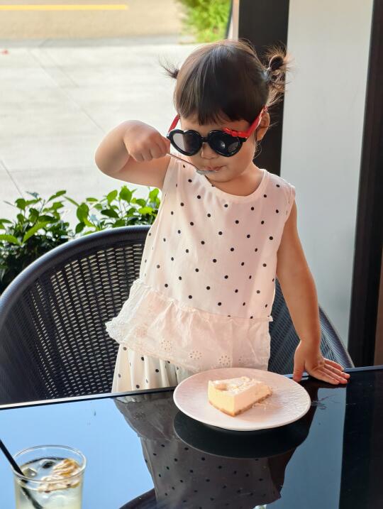 小家伙安静下来了,趴在窗边,小手指着外面的云朵和小鸟,咿咿呀呀。我抿一口冰凉的菠萝气泡水,清甜沁入心脾,再尝一口绵密的蛋糕,看着窗外流动的“漫画”与“海景”,还有身边这个专注看世界的小小人儿。