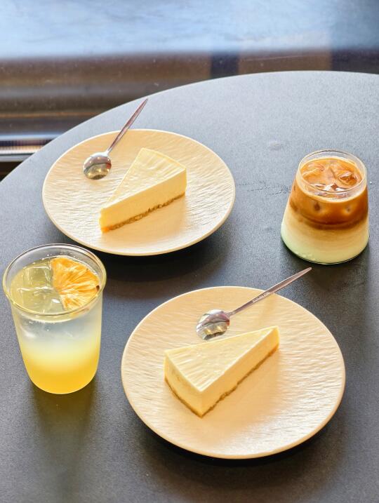 🍹 点一杯冰镇菠萝气泡水,金灿灿的果肉在晶莹的气泡里跳跃,清甜的果香弥漫开来。再配上一块精致小巧的芝士蛋糕,软糯香甜,看她用小勺子笨拙又认真地戳着,嘴角沾上一点奶油,萌态十足。