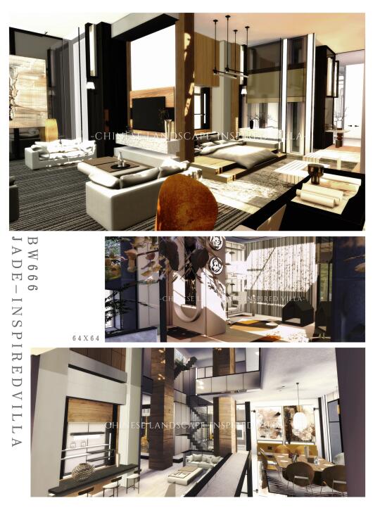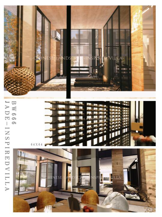 📄SIMS4 中式园林别墅Jade-Inspired Villa 📑64x64 | 6卧 · 5卫 |中式园林别墅 这是一栋融合中式园林美学的大型别墅,流水穿堂,绿意萦绕。 以黑白灰与木质相融,呈现出静谧而深远的空间秩序。 室内设有桑拿房、健身房、按摩室、洗衣房、宠物房、儿童房,以及双客餐厅、书房、酒廊,兼具生活与休闲。 泳池环绕,庭院通透,步移景异。