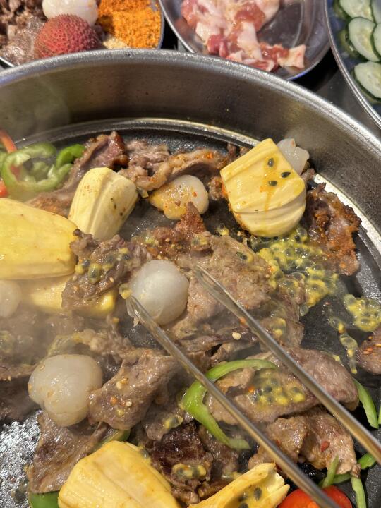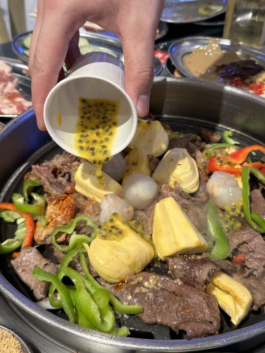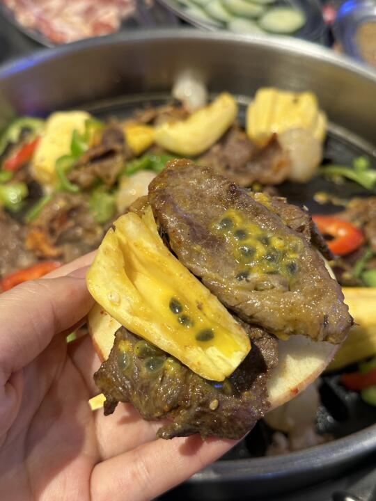 百香果➕荔枝➕菠萝蜜➕菠萝➕苹果➕牛肉 什么神仙搭配 快都给我去吃!! P2不是什么黑暗料理、一位神秘大神推荐的diy吃法 真的jujujujujujujujujujujujujujujujujuju好吃!!! 百香果淋上去的那一下、天灵盖的香炸了!!!