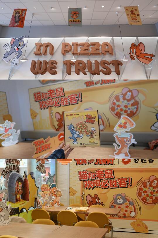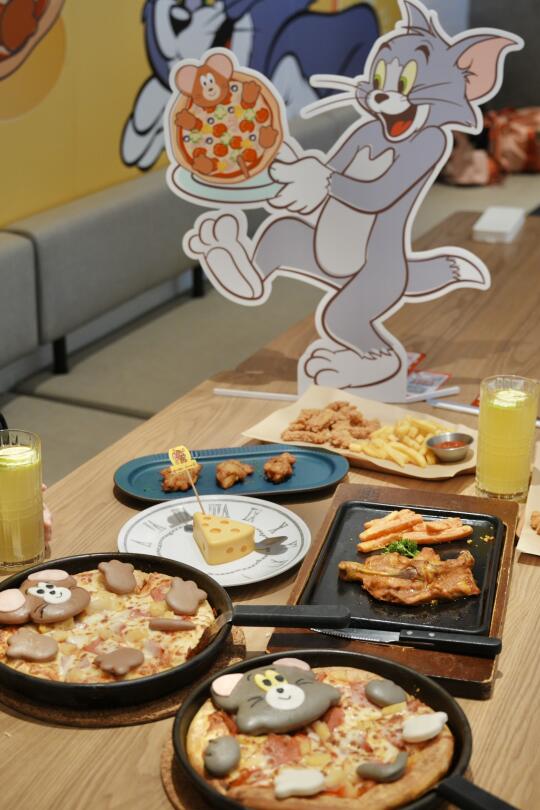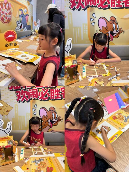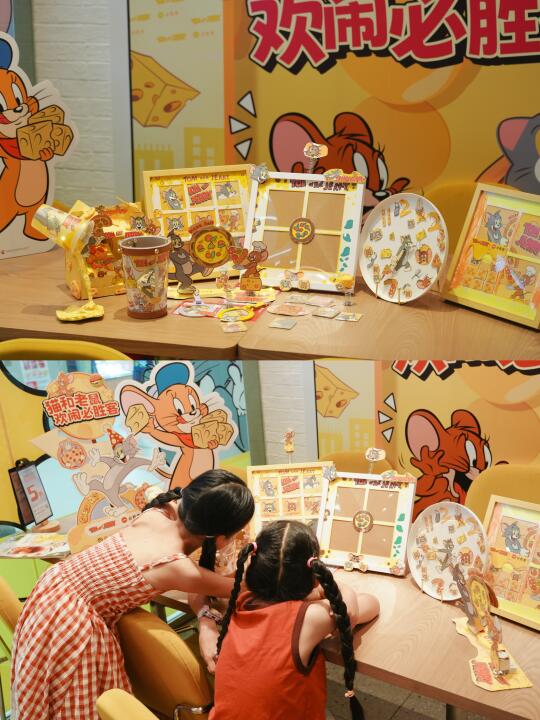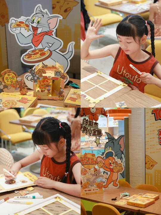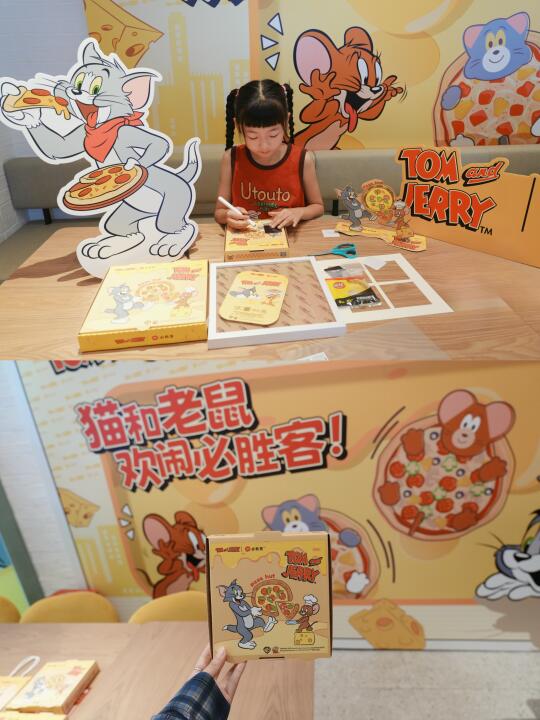 今天带娃去打卡,餐厅被满场的汤姆杰瑞元素包围,小朋友们被桌上的披萨盒汤姆杰瑞元素戳中!🍕