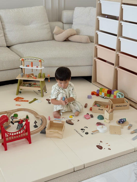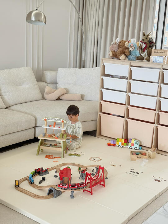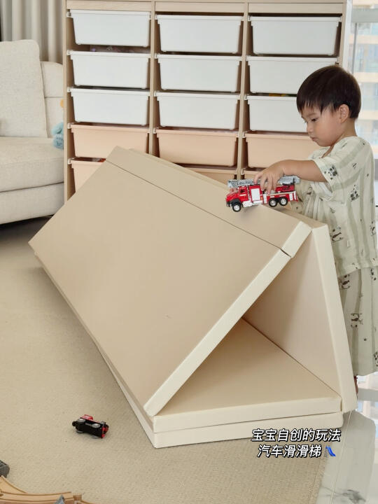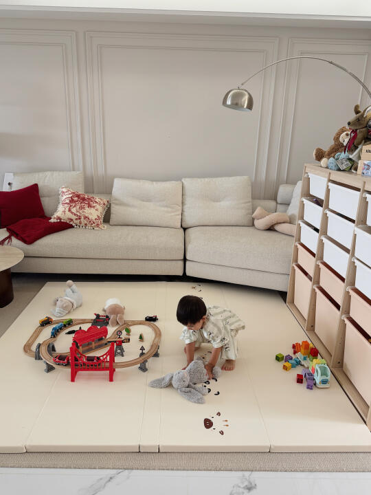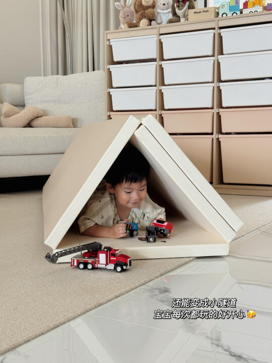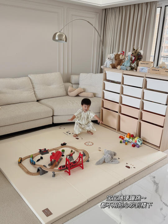 市面上的爬行垫真的是五花八门 挑了好久,终于找到一款不论是材质还是颜值都完美符合我内心的一款爬行垫 奶油白配色好高级,和我家客厅也太搭了吧 而且完全没有异味,收到后我就直接用了 表面是PU材质,防水又防污 弄脏了,湿巾一擦就干净,很好打理 内胆是ixpe材质,4cm厚度,回弹力和舒适度都很好👍 宝宝随意翻滚蹦跳,都不怕楼下投诉😂 背面还自带防滑颗粒 宝宝在上面跑跳都不怕移位了 平时不用的时候也可以折叠起来,完全不占地方 真的后悔没早点买这个luanstory防滑爬爬垫 早买早享受~