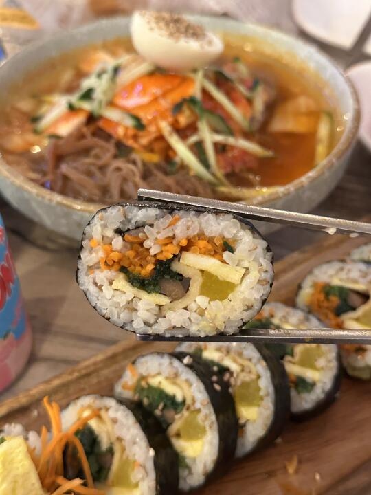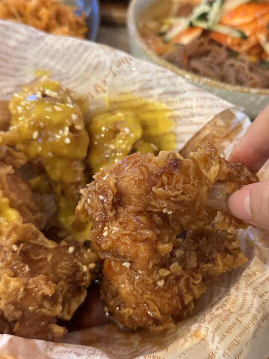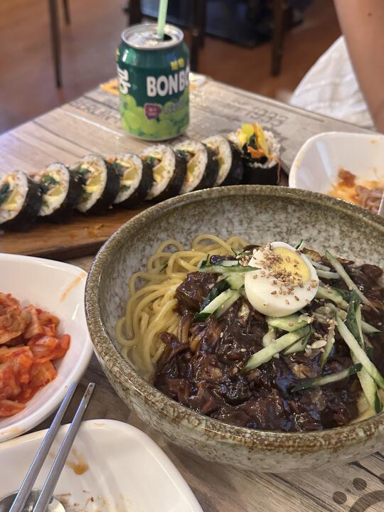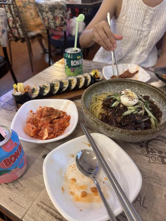 有研珍三件套、很好吃 老板也很好 是韩国人 厨师也是韩国人、人均60左右 挺便宜的 必点 炸鸡 寿司 炸酱面还有冷面也好吃 我去的是中心广场附近的那家