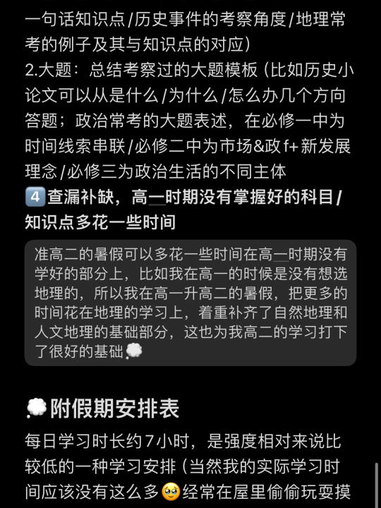 💭语数英政史地的各门学习规划&学习方法都在图里啦!大家可以仔细地看一下,以下为暑期学习时间规划安排:
