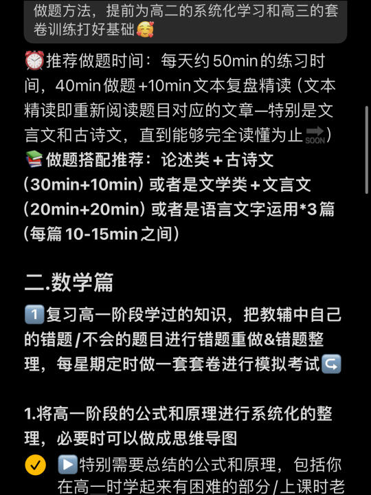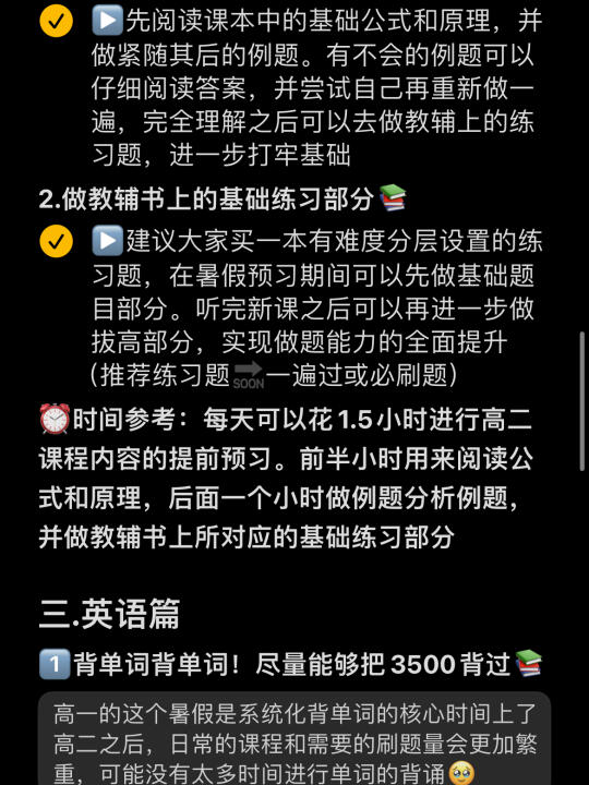 这一期给马上要高二的宝们出一期暑期学习安排