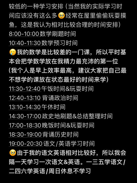 🥹由于我的语文英语相对比较好,所以我会隔一天学习一次语文&英语。一三五学语文/二四六学英语/周日休息不学习