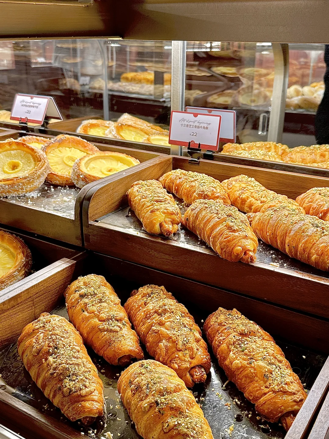 🔥必冲亮点 ▫️「黄金椰香酸奶吐司」:酥皮脆响如龙城晨❄️口感细腻且带有天然发酵的酸甜 ▫️「自焙鲜酵母蒜香法棍」:裂口藏麦香云朵芯☁️,一口吞下太原温柔 ▫️黑金配色,高级感暴击!捧文物级面包出街📸 💡天然酵种呼吸36小时,外脆内软会唱歌~ 文物在舌尖重生!穿汉服打卡秒穿千年💃 ⚡️每日现烤限量! 📍太原BAKEIT门店(早十点开抢!) ↓戳定位!错过悔三年!