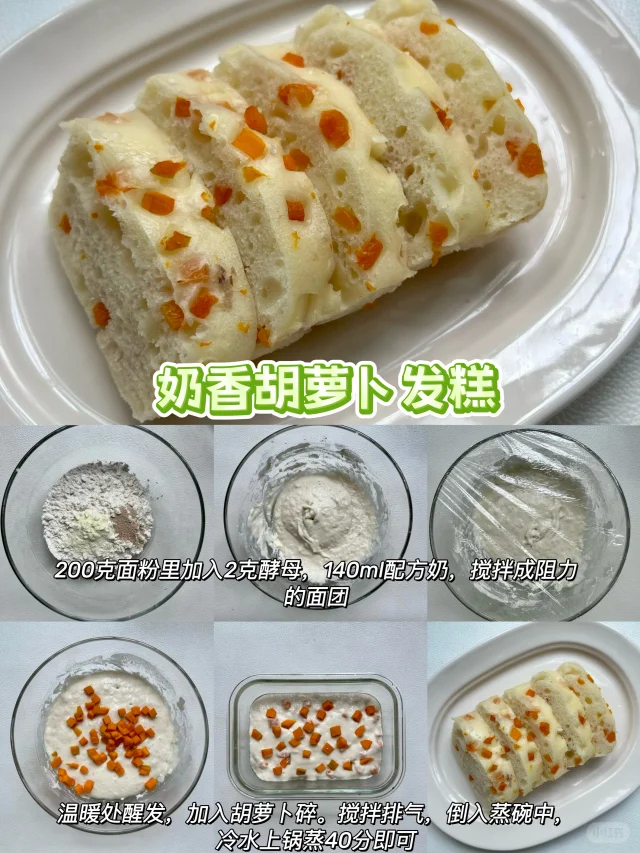 宝宝10个月以后,就可以安排营养美味又松软的果蔬发糕了,发酵类的面食宝宝也更容易消化,味道也是特别不错的,宝妈们赶紧安排起来吧!
