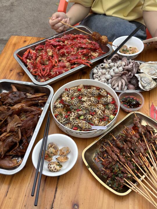 湘潭这家有被好吃到了…… 本地街坊的宵夜大排档果然接地气 5:30就坐满了人!还好同事提前来占位置了! 秘制卤水鸭、啫鱿鱼、生腌花螺、蒜蓉龙虾都好好吃 -