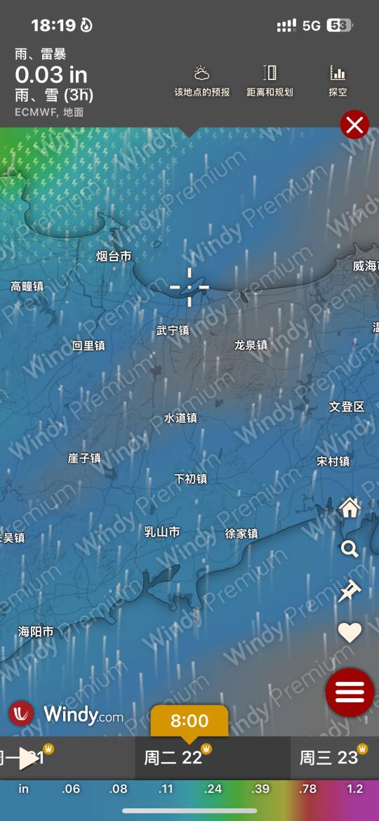 Hi.宝子们好,欢迎来烟台旅游观光!天气基本三天内准确度高!