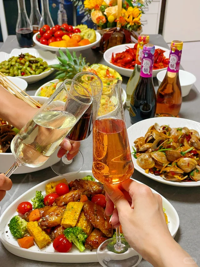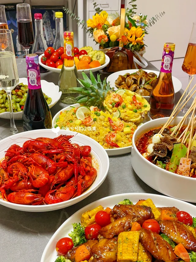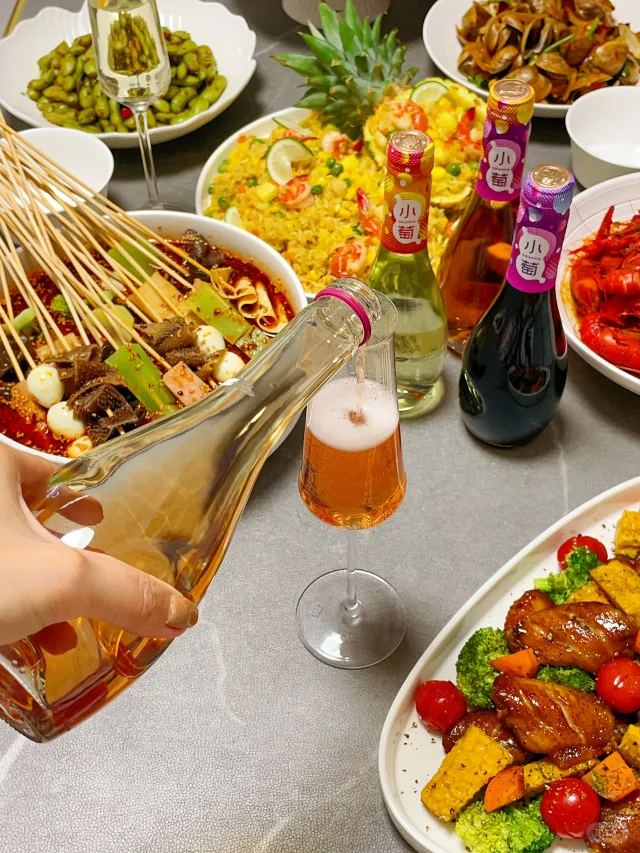 这个季节,约上三五好友,来一顿夏日美食再合适不过了~这一桌串串小龙虾组合保证吃到爽,今天我还搭配了小萄低度气泡酒,小萄这款低度酒真的和小龙虾是绝配,一口虾,一口酒,夏天的快乐开始具象化啦[派对R][派对R][派对R]