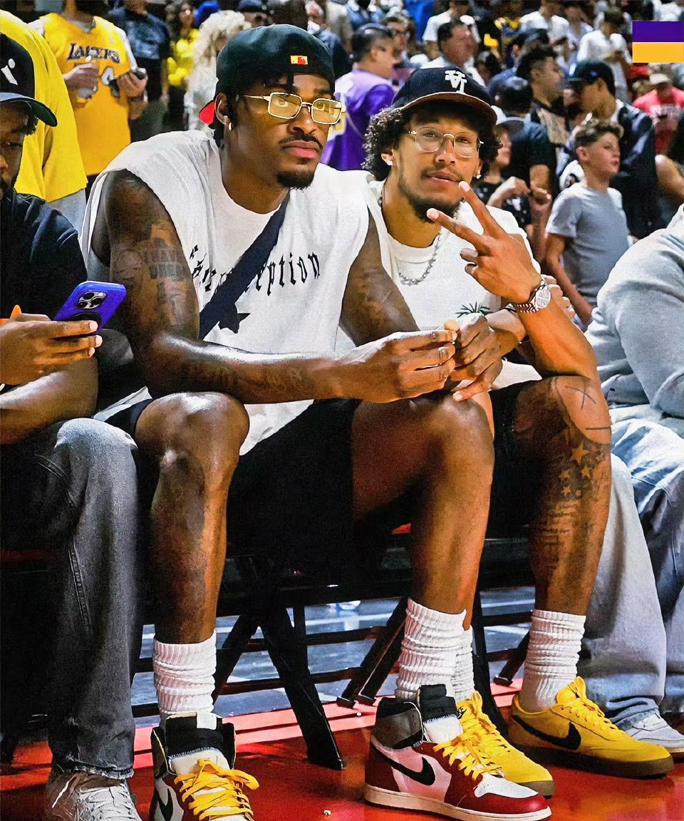 观众朋友们,迎面走来的是洛杉矶湖人型男队! 湖人夏联场边比场上好看而且热闹多了,场上除了布朗尼其他的真的是一言难尽,场边就不一样了,湖人管理层还有湖人当家球星角色球员,除了卢卡基本上都来助阵了,阵容之豪华!#湖人# #NBA# #nba夏季联赛#