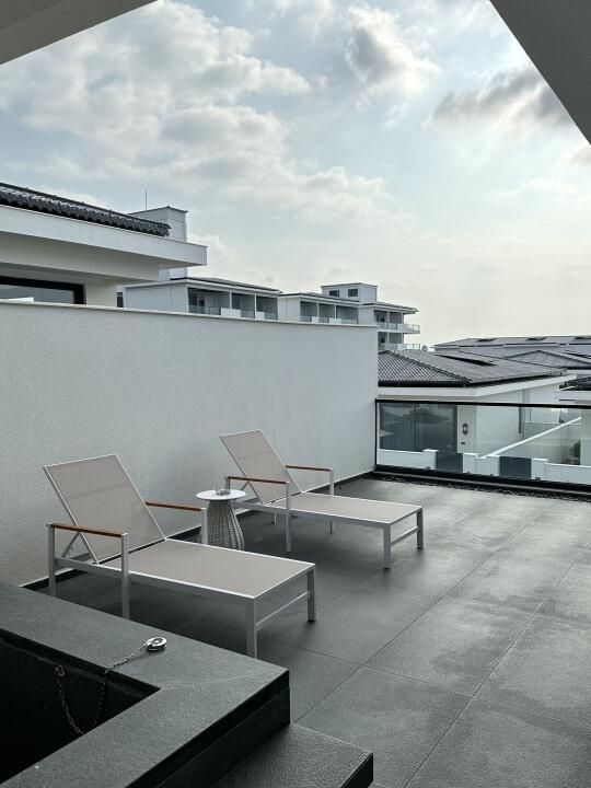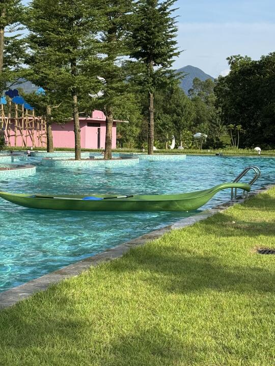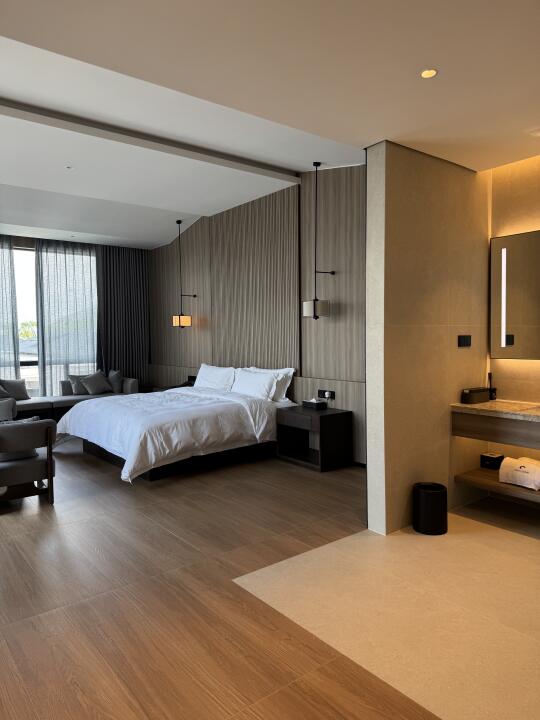 新!人少设备新,就是哪哪都很新,环境很好;好像因为刚开业有优惠所以性价比还挺高;别墅房设计很漂亮高档,房间很大,每个房间都带私汤,我们入住双方别墅,两个房间都带私汤;房间卫生间多!这点我很喜欢,我们两房配有三个卫生间;酒店的泳池设计我很喜欢,水也干净,还有很多泳池设备可以出片;里面还有挺多游玩的项目,我们娃太小了玩不了所以只体验了骑车;还看到一大片稻田,但是还没完全建设好,稻田还没长出来,期待下次去看到满满的稻田