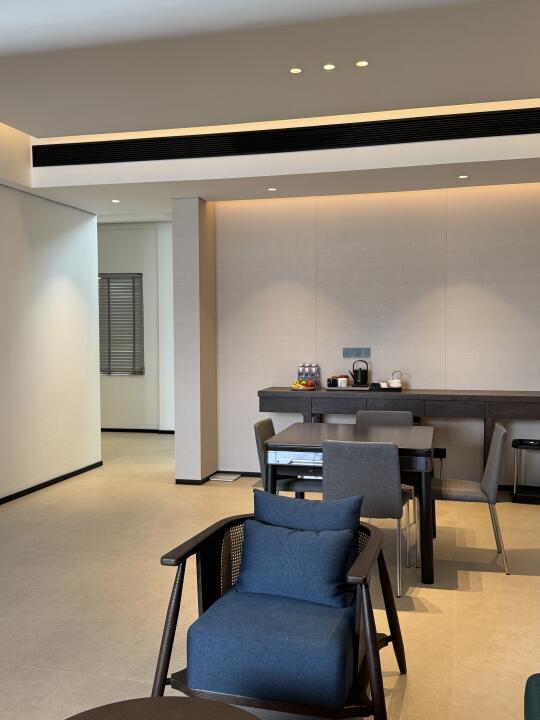 有一部分工作人员态度非常好,但也有个别态度不太好,可能是新酒店培训不完善吧;酒店早餐不好吃[失望R]品种也少,感觉跟酒店格调很不符合,有大大提升空间;周围吃得少,我们晚餐去三禾稻里解决的;没有室内停车场,炎炎夏日车停室外有点难顶;我们入住的房间打扫不干净,地板灰尘挺多还有头发,椅子上还有吃过的雪糕棒[石化R]希望酒店注意打扫方面
