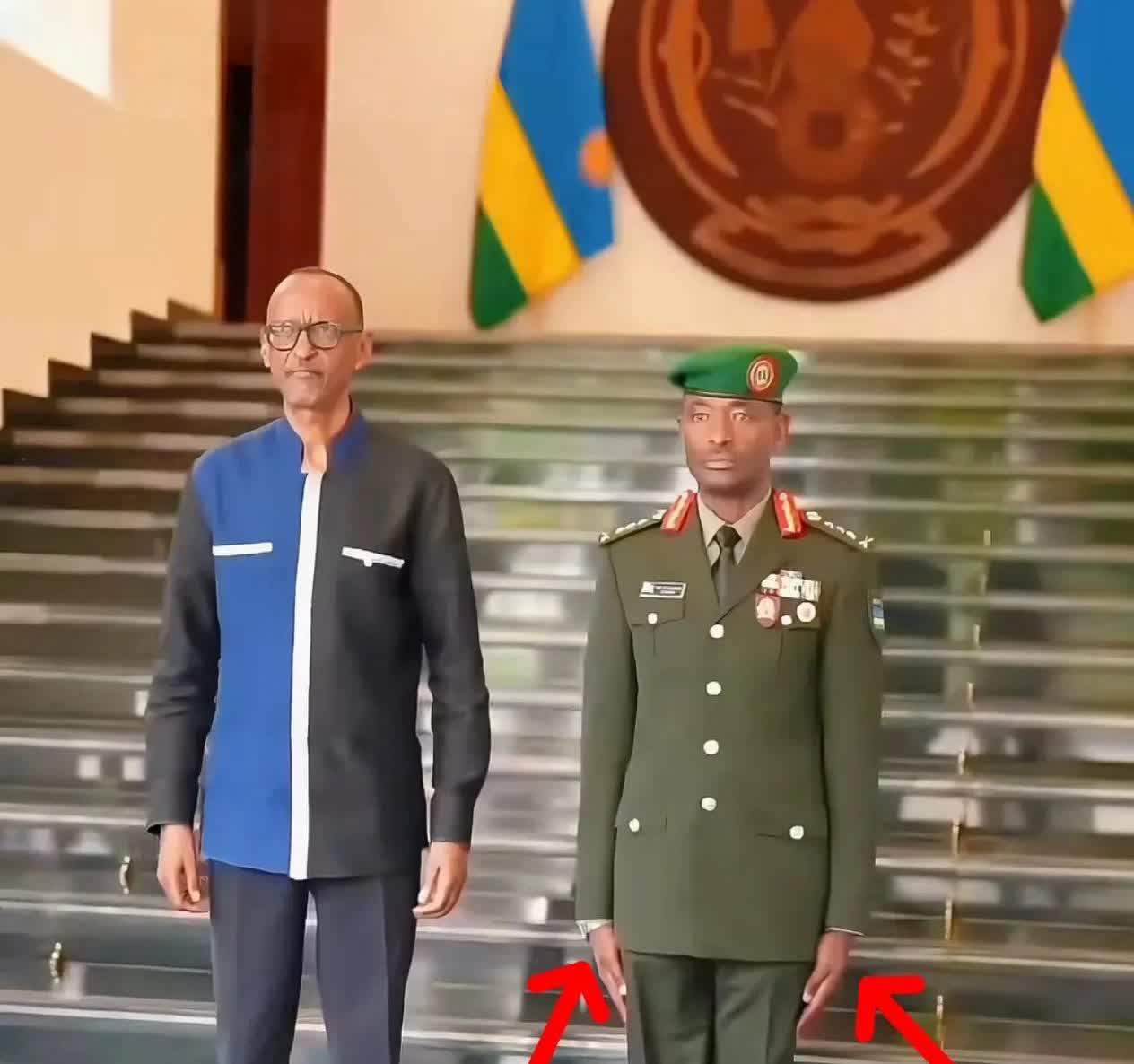 是否被东大训练,手势最明显。卢旺达新一届领导班子可谓兵强马壮,箭头所指的是穆巴拉克·穆甘加,任国防参谋长。注意他的手势,这种手势当过兵的人应该都懂,双手十指并拢,中指贴于裤缝线,这是非常典型的军姿手势。 穆甘加是卢旺达少有的有出国深造经历的军官,从游击队长一路升到国防参谋长,能力可见非同一般。 这两张合影照片,细节是穆甘加手势,看懂的人都明白,这是学以致用,是时刻严格要求自己,更是以上率下。由此看来,卢旺达军队战斗力强,能打胜仗不是没有原因的。