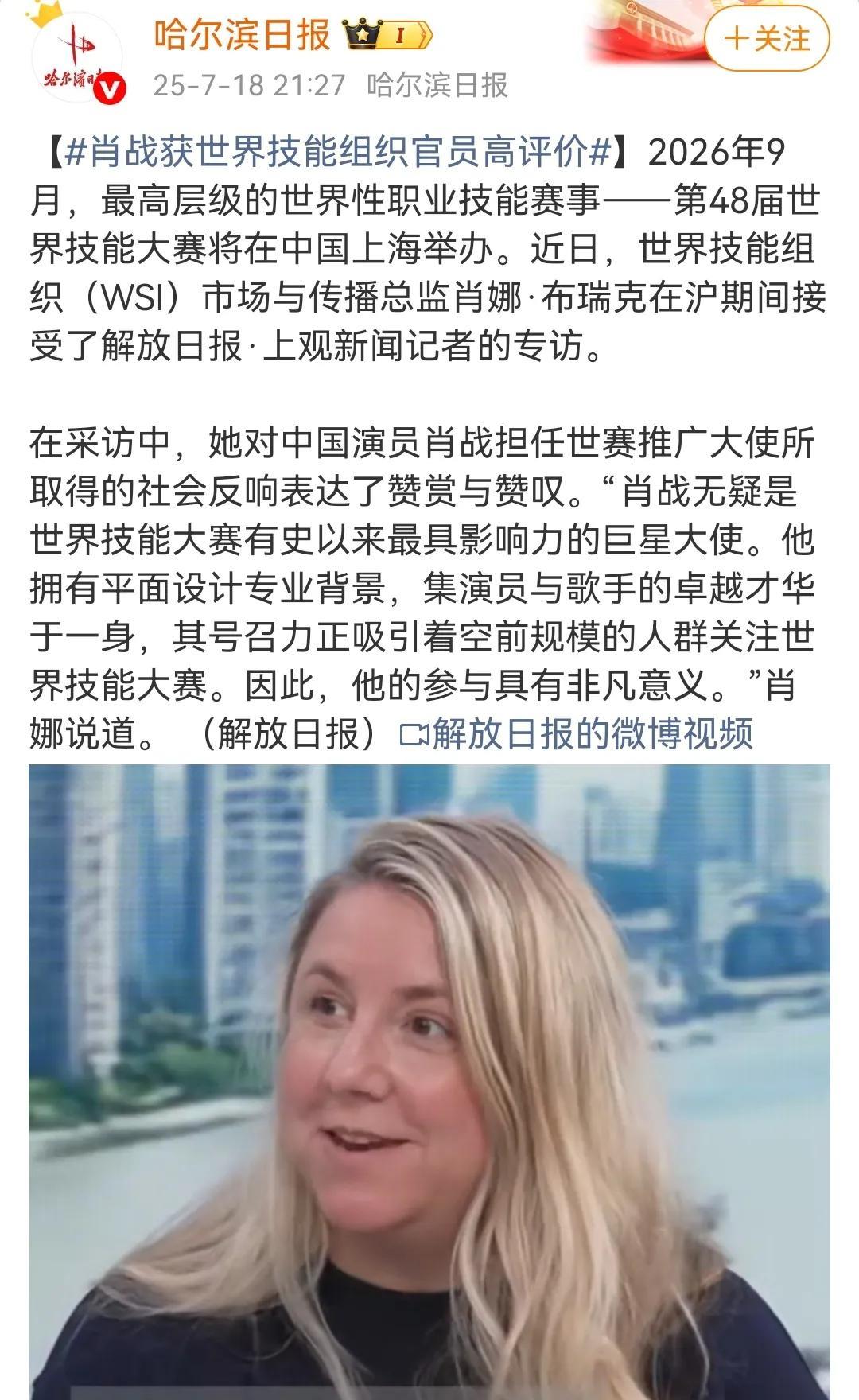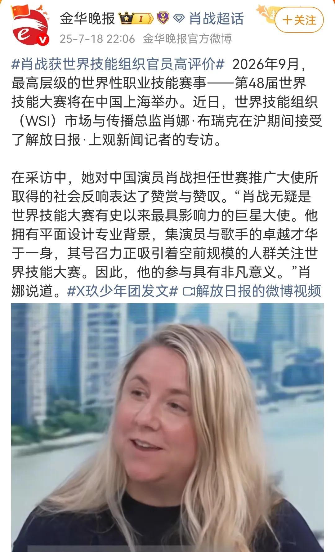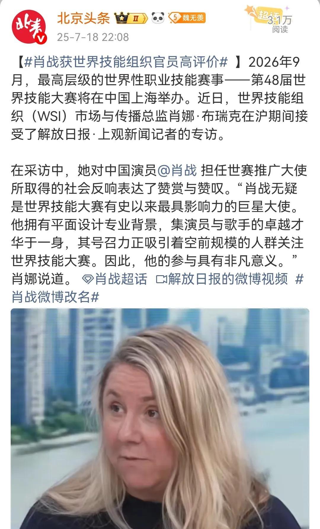 7月18日,媒体报道#肖战获世界技能组织官员高评价#近日,世界技能组织(WSI