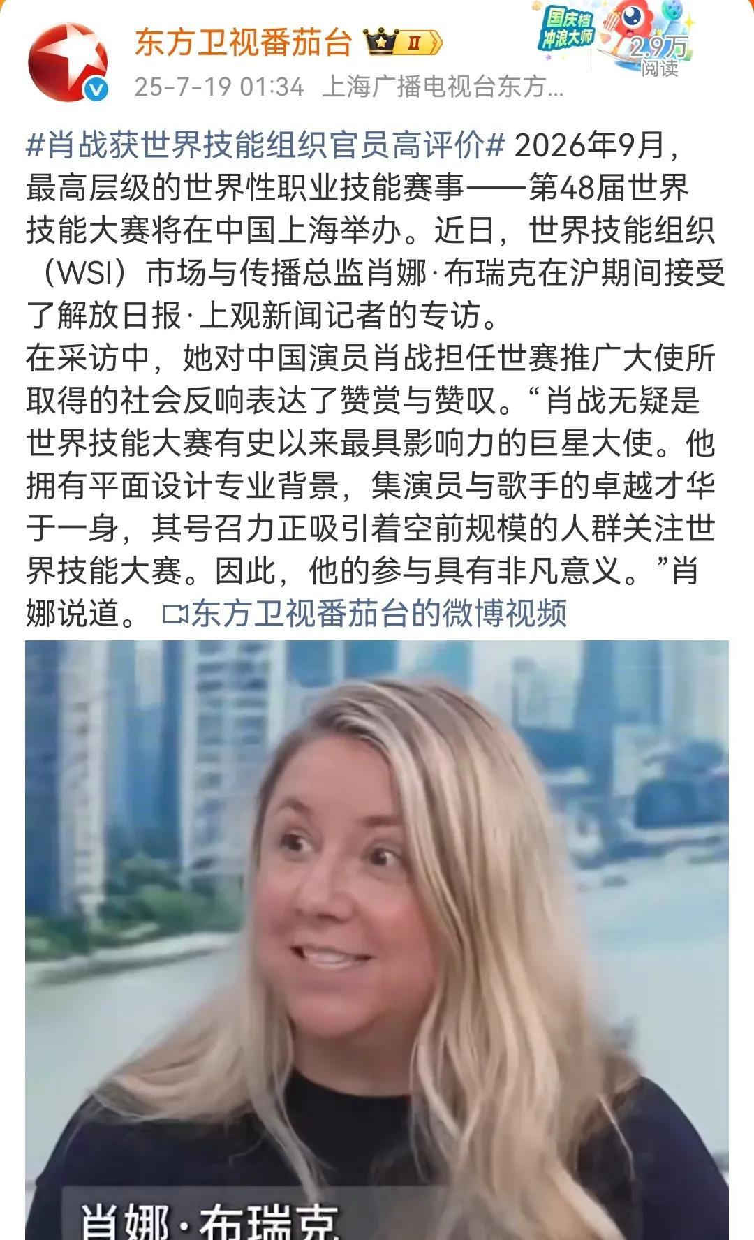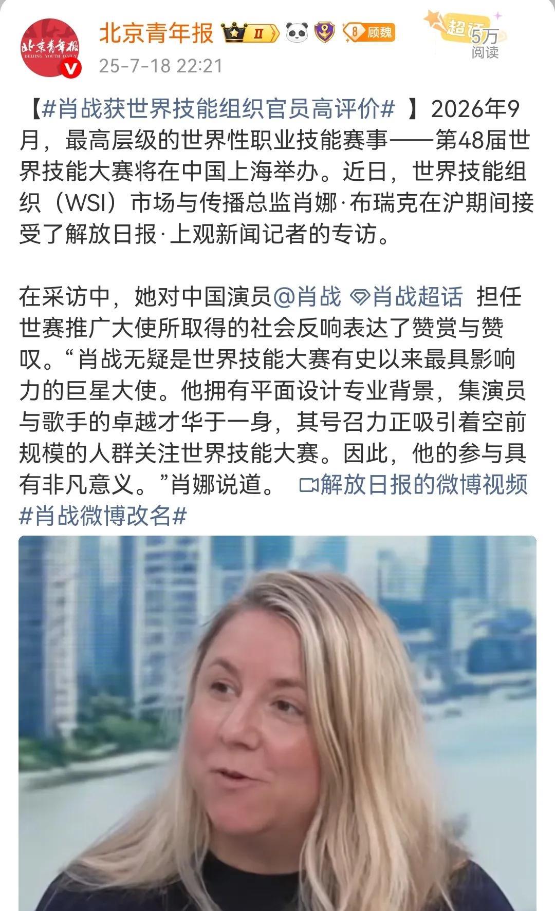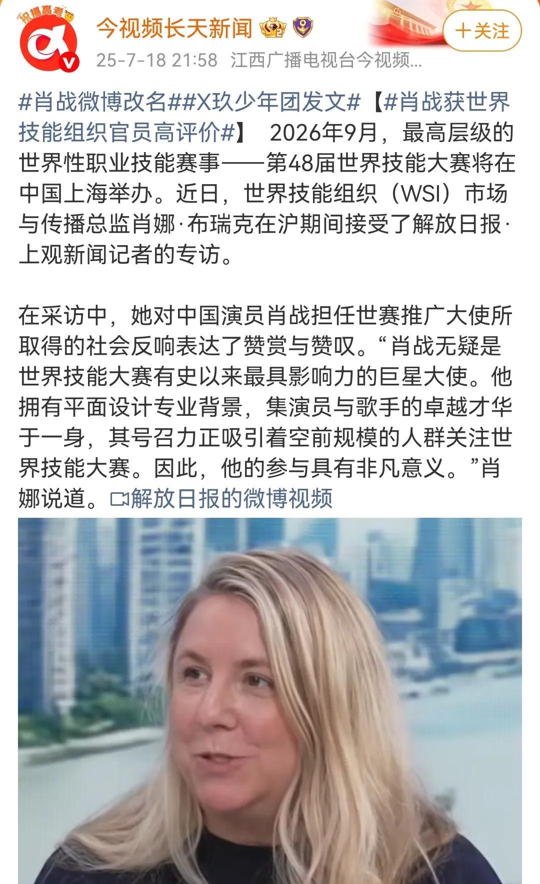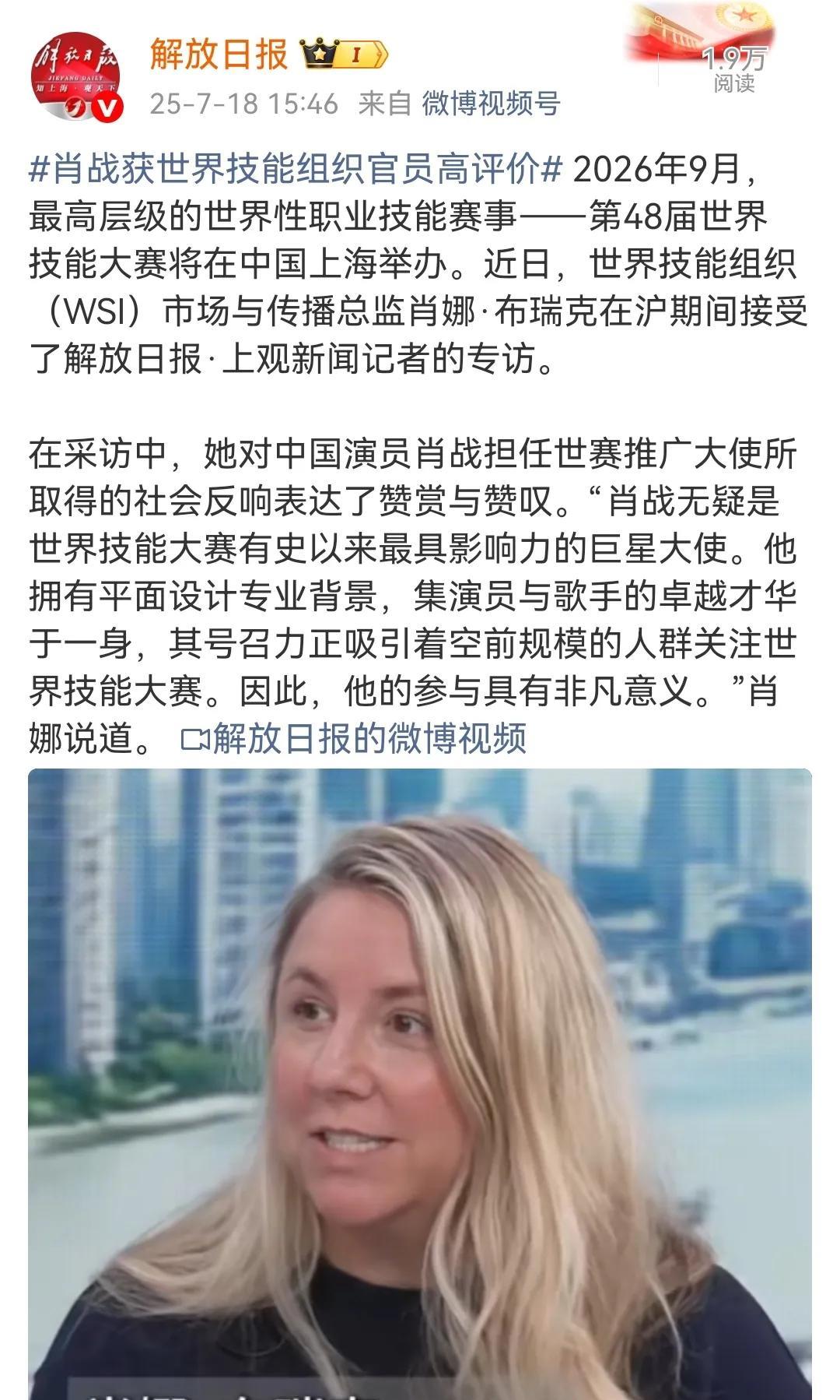 7月18日,媒体报道#肖战获世界技能组织官员高评价#近日,世界技能组织(WSI