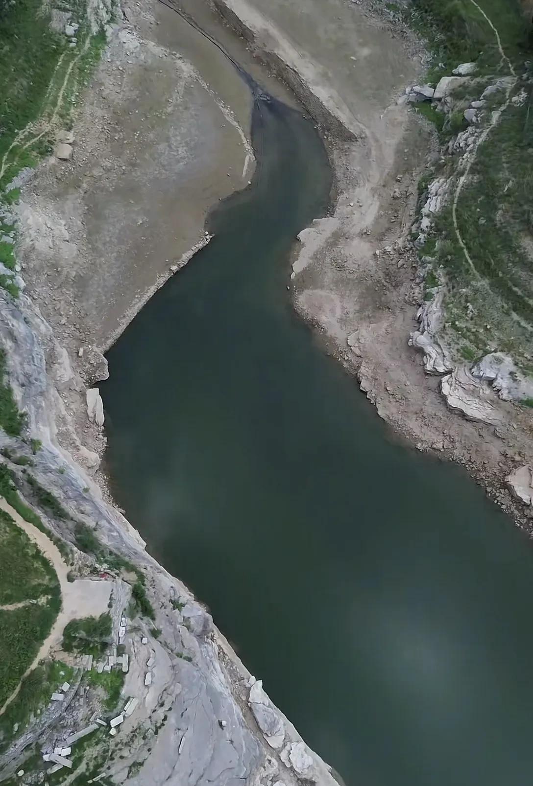 位于济南市区东南部的浆水泉水库最近水位下降明显,整个水库呈现出南高北低的地貌特征,南部的区域已经完全见底,露出了大片的水草和黄色泥沙。北侧由于水位的降低,水库的四周立体轮廓也显露无疑,到处都是垂直的崖壁和凌乱突出的岩层。这个水库目前既不是饮用水源水库,四周也无庄稼树木需要灌溉,下游有一条长长的窑头大沟直通小清河,只不过每年水库放水的次数很少,这条大沟也是常年甘干涸。