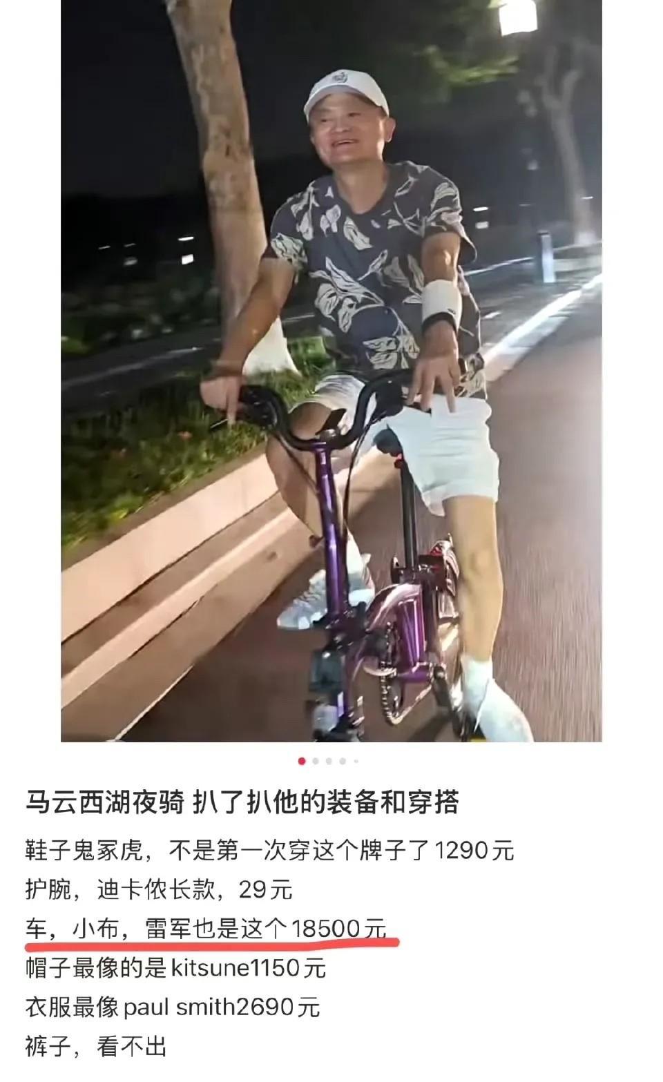 马云在西湖骑行兜风,春风满面,60多岁了,回眸一笑,好年轻啊! 前晚,有一位女网友在西湖夜游,偶遇正骑车而过的马云。 他戴着白色棒球帽,白色短裤,一件迷彩色T恤,还带上了白色的护腕,现在十分清爽年轻。 马云骑行轻松,悠闲前行,速度不紧不慢,状态看起来非常不错,夜空下,远处的城市建筑轮廓剪影随着他的身影一闪而过。 女网友邂逅马云,非常惊喜,激动地问:“是马老师吗?” 马云回眸一笑春风生,老男人居然有几分少年感,表情萌萌哒,哈哈哈哈,那个笑容慢慢绽放,牵到腮帮,甚是可爱。 马云还扬起了左手,向网友打招呼。 网友看到这个表情和手势,像是得到了鼓励,赶紧又问:“马老师你也来夜骑呀?” 马云边骑车,边笑着回答:“对”。 又加了一句“凉快”,骑车姿势十分潇洒。他可能是回答网友,为什么要夜骑,因为骑车兜风很凉快吧。 最后他还用手指指了一下来来往往的人和单车,提醒网友“注意安全”。 可能网友在骑行还拍马云,所以叫她注意安全吧。哈哈,好贴心的马老师呀! 不过,有人注意到马云的单车,说他骑的自行车是旅行车,最便宜的要两万,贵的有十几万和几十万。 据悉,马云骑行的单车是一个英国的知名品牌,叫BROMPTON,有独特的折叠设计,配置高档,手工制作工艺精湛。 有网友又扒出了马云的着装费,说看似简简单单的一身也要上万元。 网友们的评论很搞笑: 这有什么嘛,我心态立刻平衡了,马云跟我吹一样的风! [笑哭]不,你想多了,人家吹出来的风都有钱味,你的有汗味,我的也是……哈哈 只要他想,他能够在第二天就吹到地中海的海风[呲牙] 你吹过他吹过的风,算不算相拥,你走过他走过的路,算不算相逢。 [彩虹][彩虹]