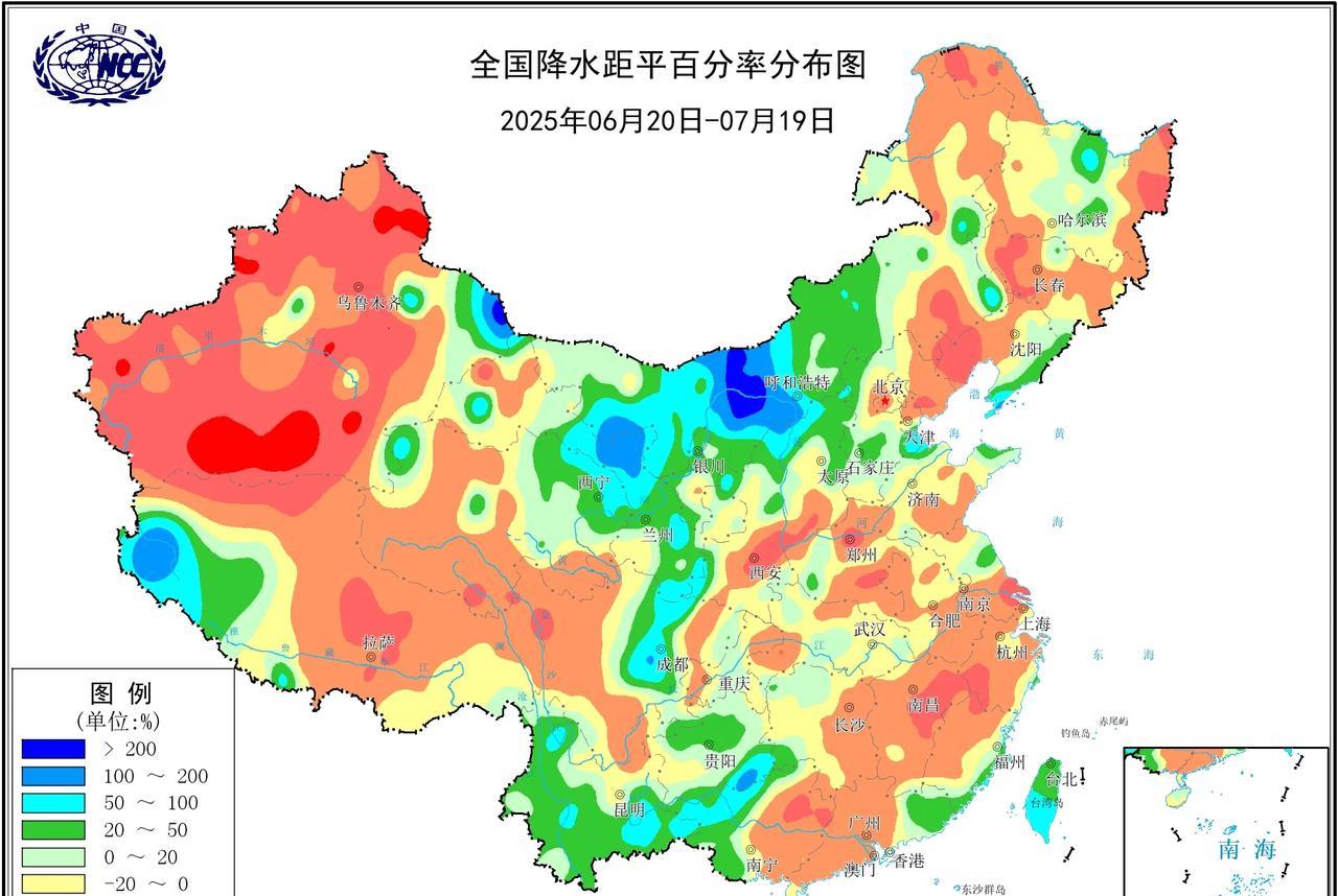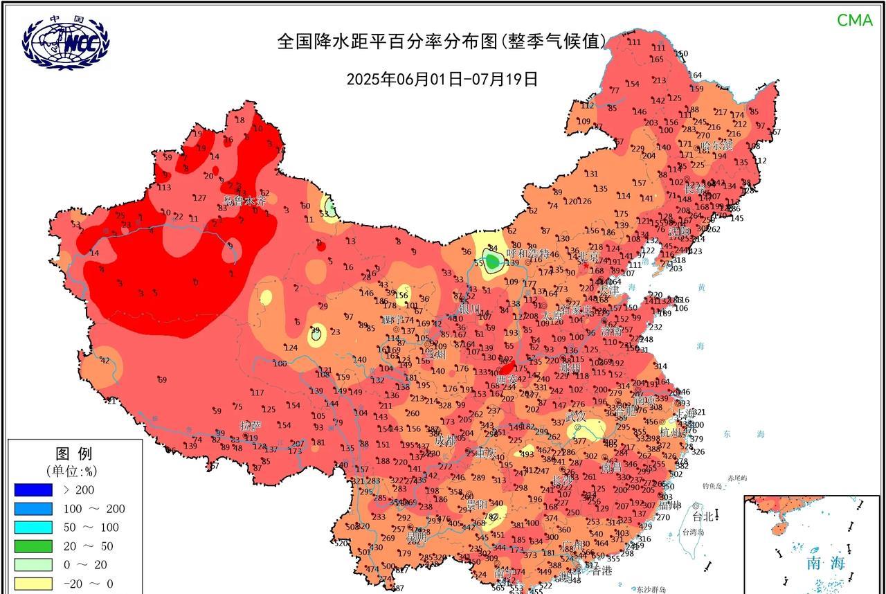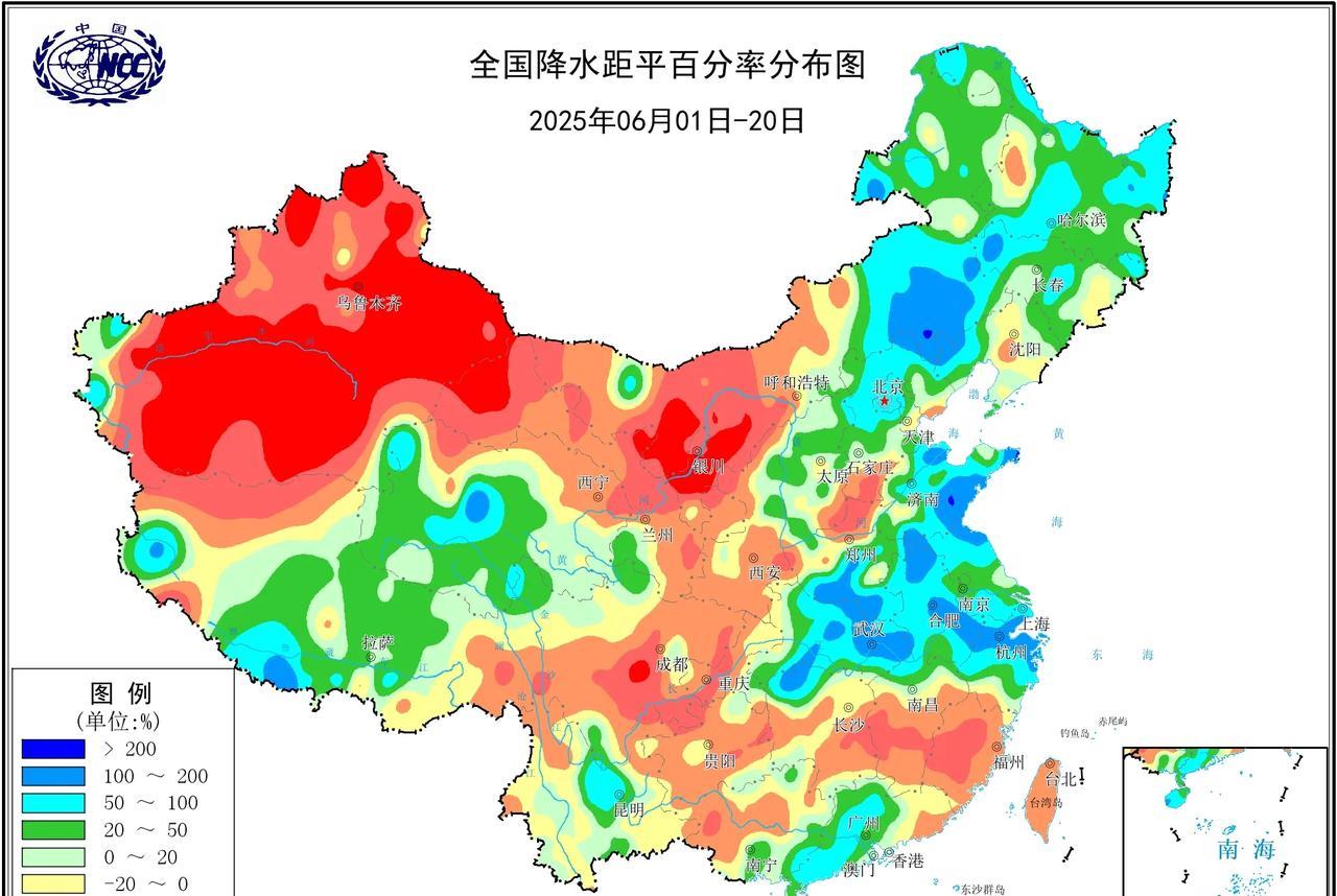 夏三月已经过半,全国累计降水量上中东部大部地区在100-200mm以上,长江沿线至华南西南地区可达300-500mm左右。但从降水量距平来看,降水偏多的区域并不多,反而偏少的区域到处都是。