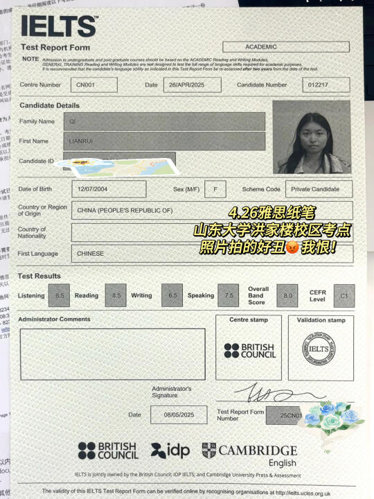 2️⃣雅思首考出分8(6.5)不准备再刷小分了,没有时间再刷了而且我不准备申卡小分7的学校