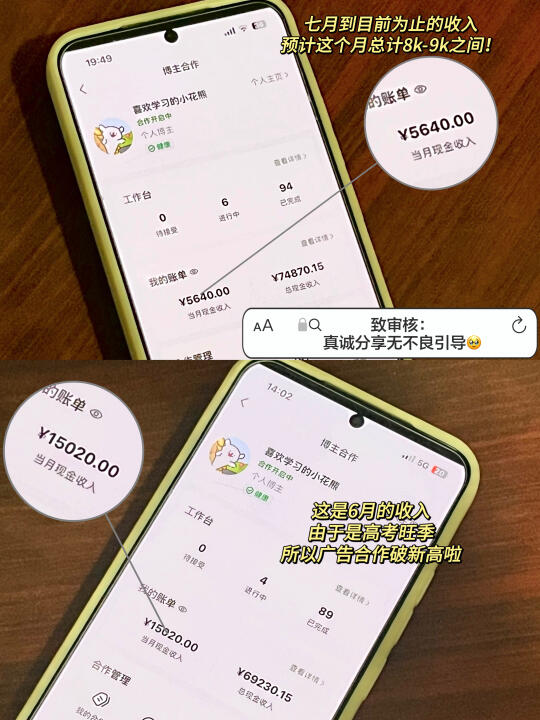 1.新媒体:【合作广告】是主要收入来源,本学期合作收入约3.5w(其中6月是高考旺季,接到了不少合作,合作收入单月突破1.2w)