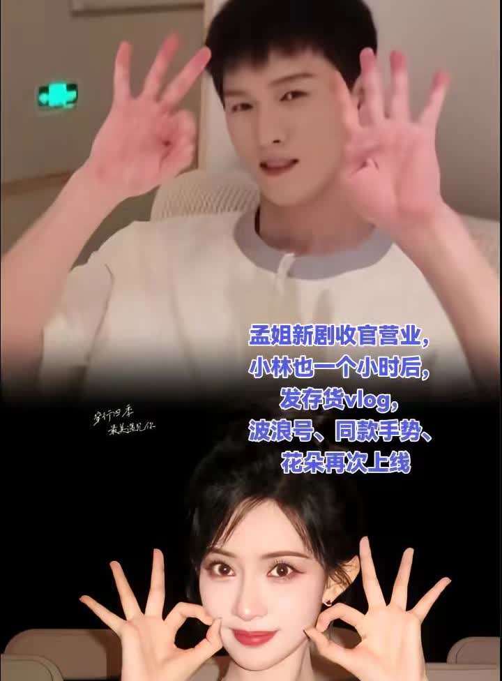 孟姐新剧收官营业,小林也一个小时后发存货vlog,波浪号、同款手势、花朵、红心❤️、红绿相间的品牌LOGO,小林这是一举两得,即纪念自己的成绩,又暗戳戳恭喜孟姐新剧顺利收官吧!