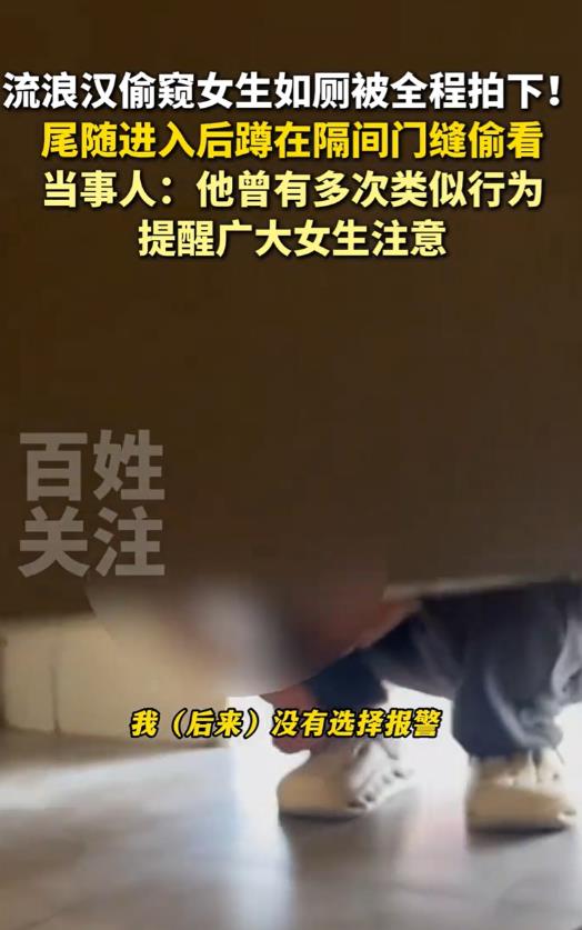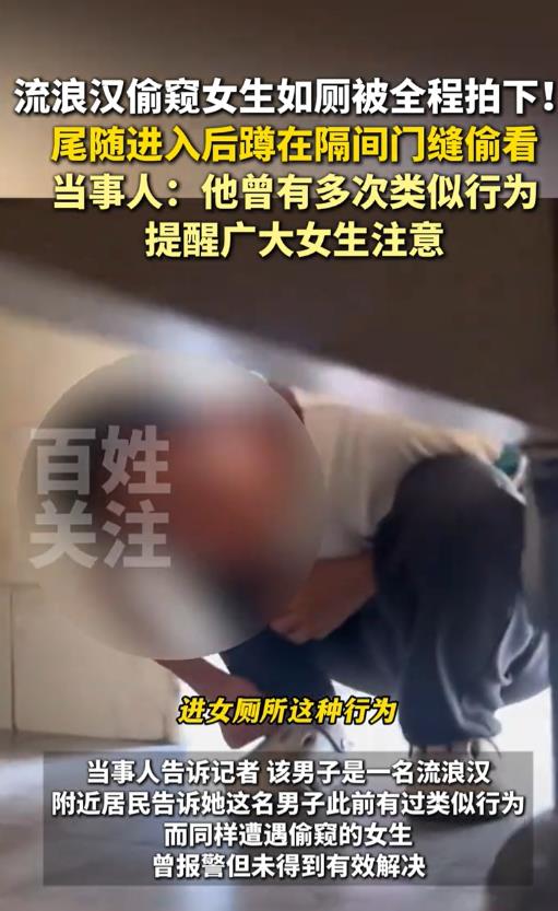 河南信阳,一女子在某公厕如厕时惊见门缝下嵌着一张男人的笑脸,竟有一个流浪汉正趴地