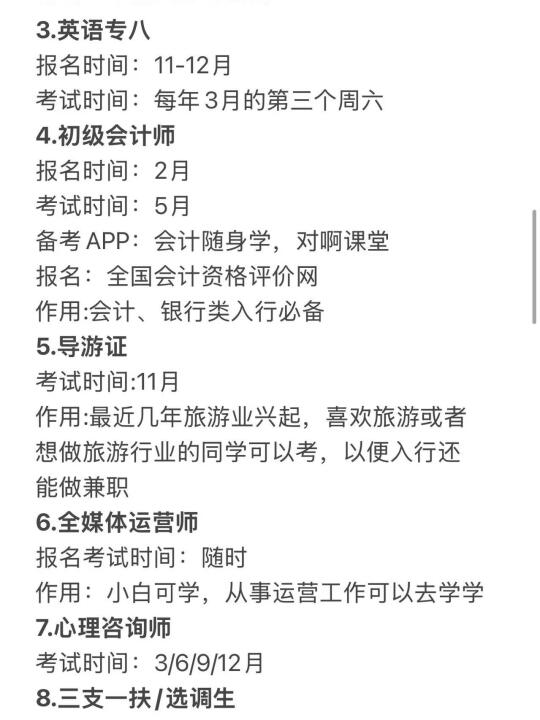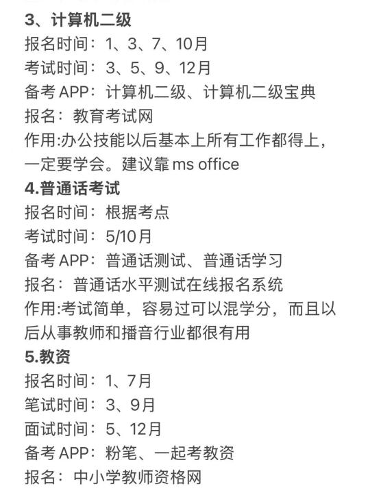 今天给大家整理了大学一些主要证书的考证时间表和大学生考证四年规划。没有辅导员会告诉你这些!