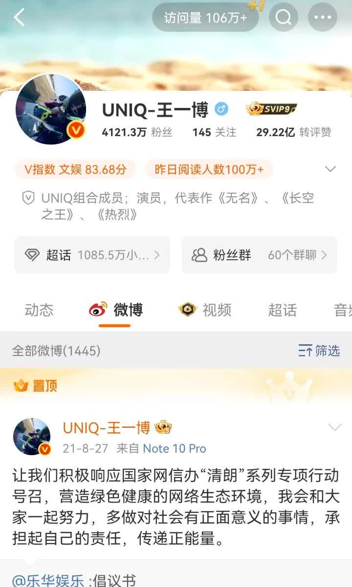 哎呀怎么这么好笑,这两天还真有路人吃瓜去看王一博既无瑕疵又漂亮又有份量的简介代表作呀,平时王一博不出来的日子,Vb访问量大多在7一80万,P1是中午我在Vb刷到mtjj发出来的,访问量102万+,粉丝量4121·2万,发帖的mtjj说巳涨粉7千,P2是我六点钟进去截的,访问量涨了4万,粉丝量又涨了1千,王一博一个什么都不做就能涨粉的明星[笑哭]说实话,简介代表作也确实漂亮,难怪吃瓜去看的人都会被吸引[大笑]