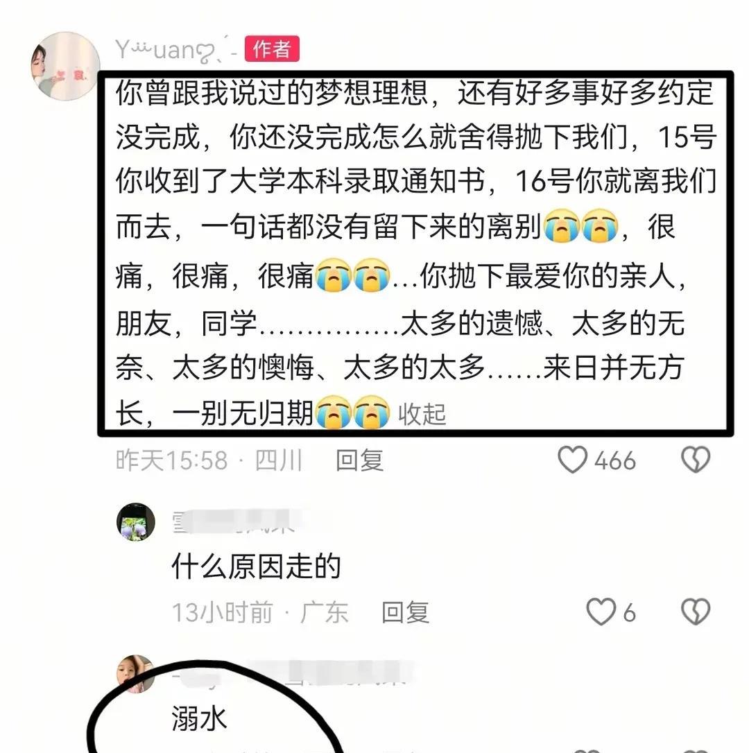 又一人间悲剧,收到录取通知书的第二天,他就意外溺水身亡 据女网友发文称: 7月2