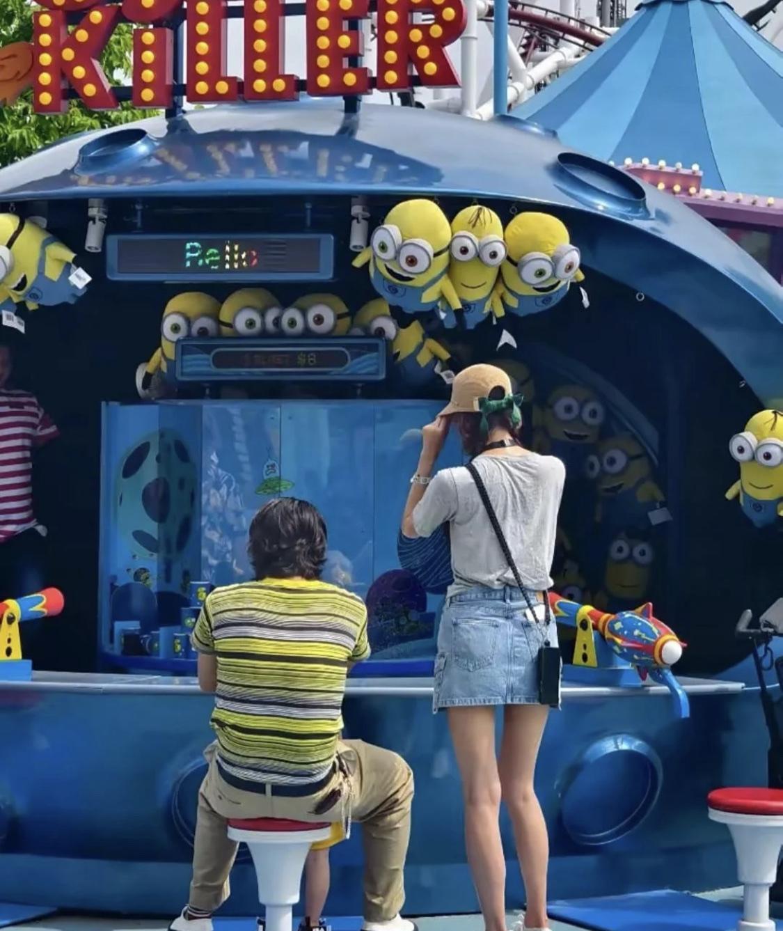 林志玲又被拍到和老公黑泽良平一起带娃游玩,林志玲当天穿着牛仔短裙,大长腿很吸睛。
