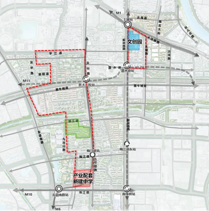 之前中海峰境梅江卖时就号称绝版老梅江,没想到这一下子又出来两块,而且也是河西老梅江。 位于郁江道与五号堤路交口西南侧位置,分东西两个地块,西地块计划于今年4季度完成土地出让;东地块计划于2026年3季度完成土地出让,出让后启动建设。 两块地都属于河西区郁江新里城市更新项目新建住宅。 该城市更新目前已经启动,总投资超48亿,除了新建住宅外,还会新建一所36班中学,位于五号堤路与珠江道交口西北侧,规划占地面积约4万平方米,建成后将交由政府统筹安排使用。