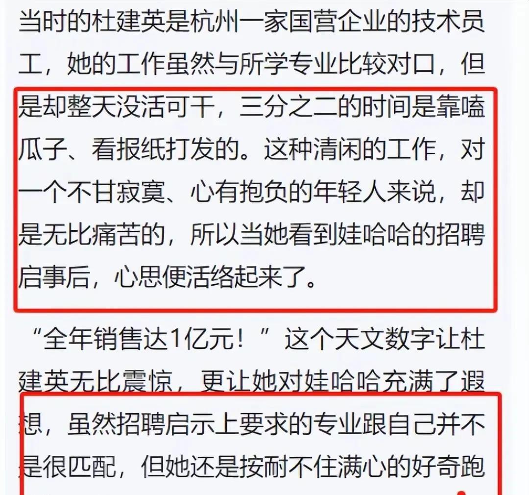 宗继昌绝对不可能是宗庆后的儿子!因为他出生的时候他母亲根本不认识宗庆后 网上公开的资料,杜建英1988年毕业于浙江大学,第一份工作在杭州一家仪器厂,1989年大儿子宗继昌出生。 而根据宗庆后的自传介绍,他和杜建英1991年才认识,那么1989年的宗继昌到底是谁的儿子?如果宗庆后所写的是真实的,那么宗继昌肯定不是宗庆后的儿子。那么为什么又姓宗呢?网上有不少网友质疑很可能是宗泽后的儿子,现在想一想还真有点道理。 会不会这样,宗泽后很早就认识了杜建英并谈恋爱,然后就生下了宗继昌?后来,杜建英应聘进入了娃哈哈,最后在宗庆后、宗泽后的兄弟帮助下,杜建英一步步升到了集团党委书记的位置。 免责声明:文章的描述过程、图片均来源于网络,此文旨在倡导社会正能量,不存在低俗等不良引导。如涉及版权或者人物侵权问题,请及时联系@英雄拒绝黄昏 @英雄拒绝黄昏之廖志伟 ,我们将第一时间删除内容!如有事件存疑部分,联系后会即刻删除或修改!