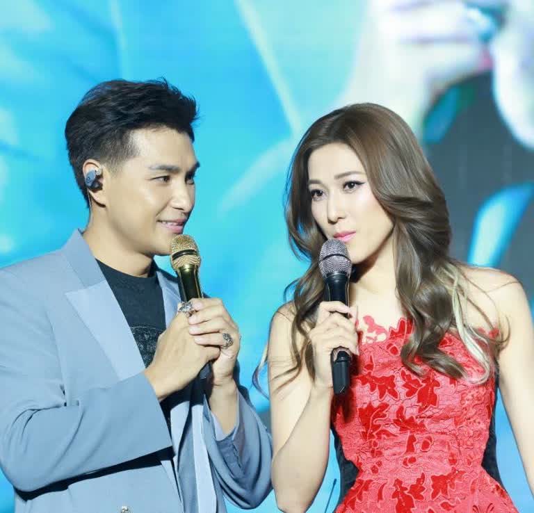 钟嘉欣惠州个唱秀白滑美腿魅力四射陈展鹏携妻单文柔捧场相隔10年再同台合唱