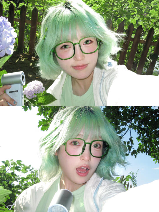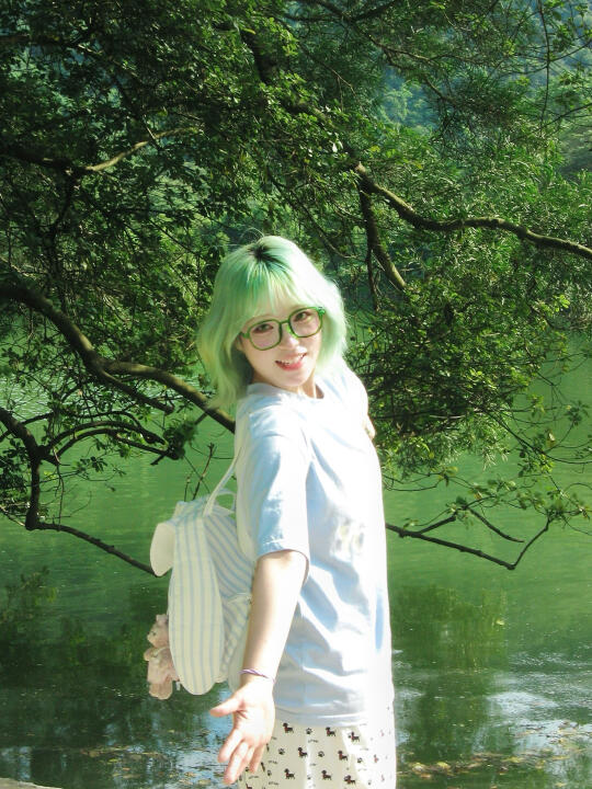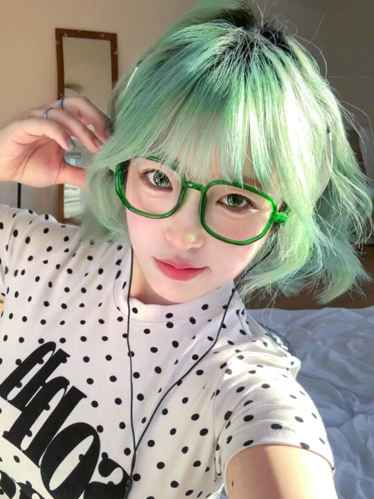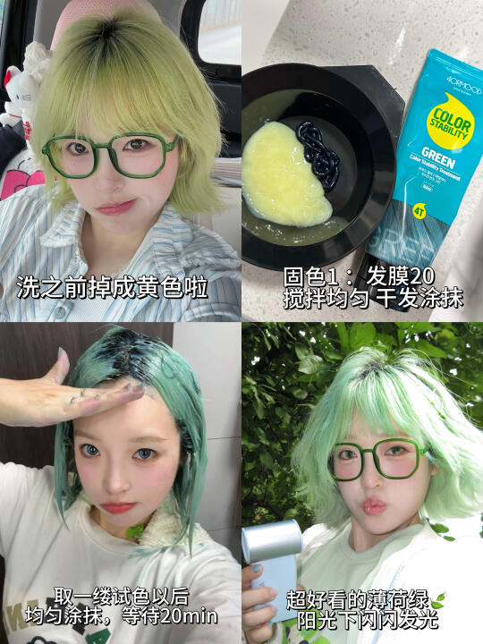 全头是按4ormood绿色1:护发素20,底色直接上的,发尾稍微揉搓一下会有渐变的效果hh停留20min就可以冲掉啦!无敌显白,但这个颜色比较浅 掉色会有点快(大概八天左右)
