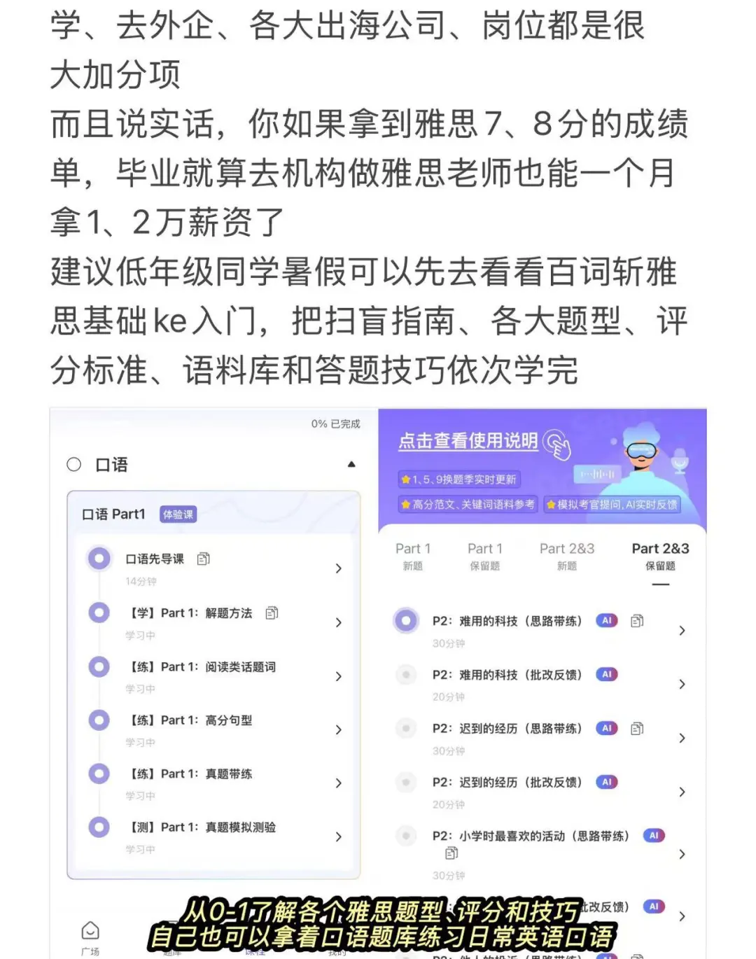 建议低年级同学暑假可以先去看看百词斩雅思基础ke入门,把扫盲指南、各大题型、评分标准、语料库和答题技巧依次学完