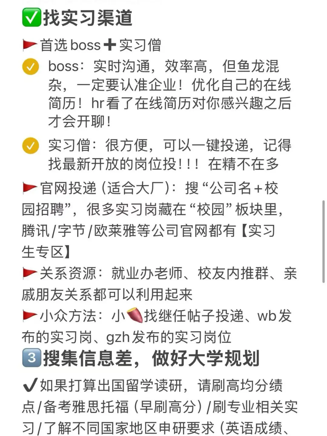 🚩小众方法:小找继任帖子投递、wb发布的实习岗、gzh发布的实习岗位