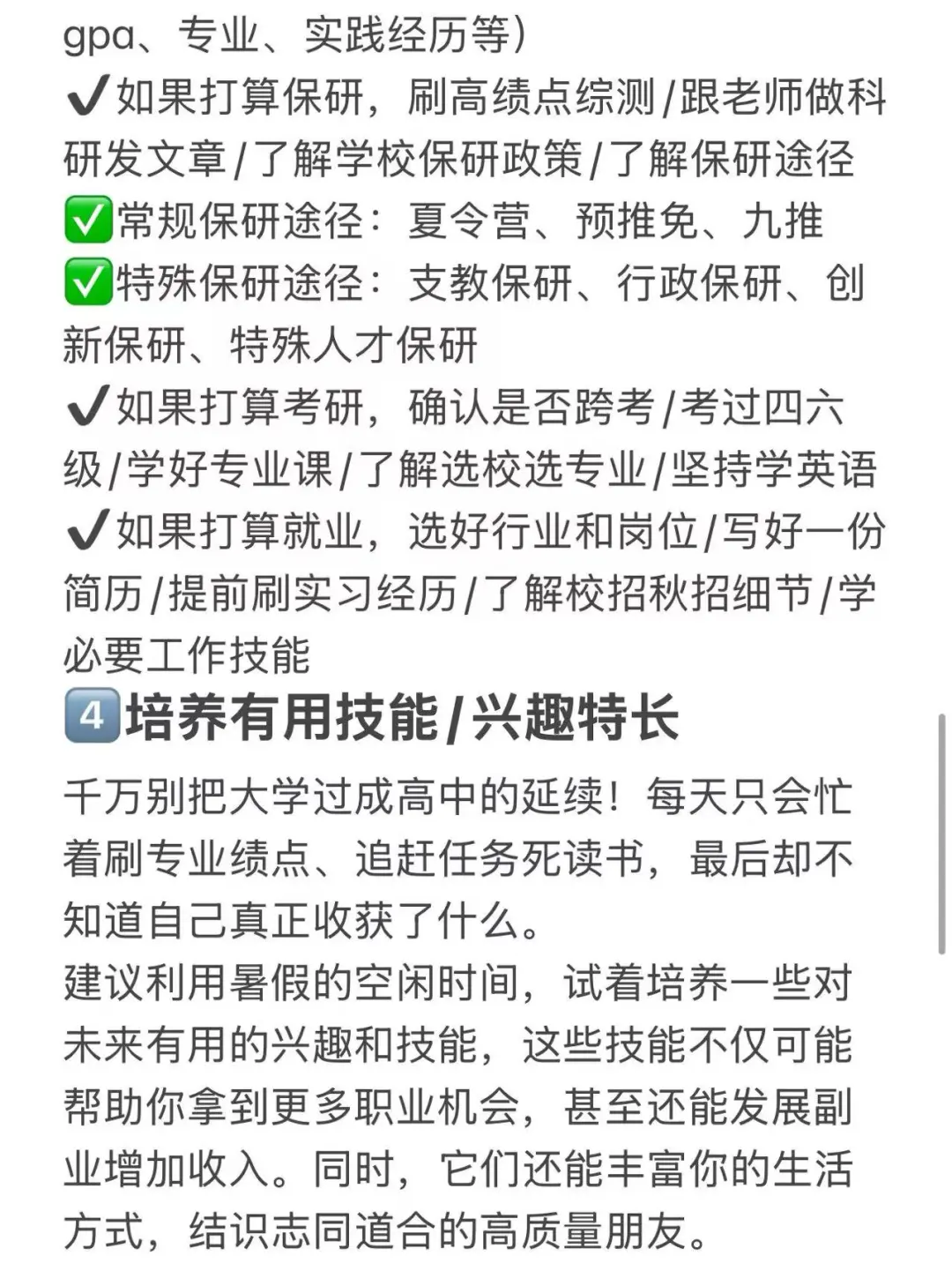 ✔如果打算保研,刷高绩点综测/跟老师做科研发文章/了解学校保研政策/了解保研途径