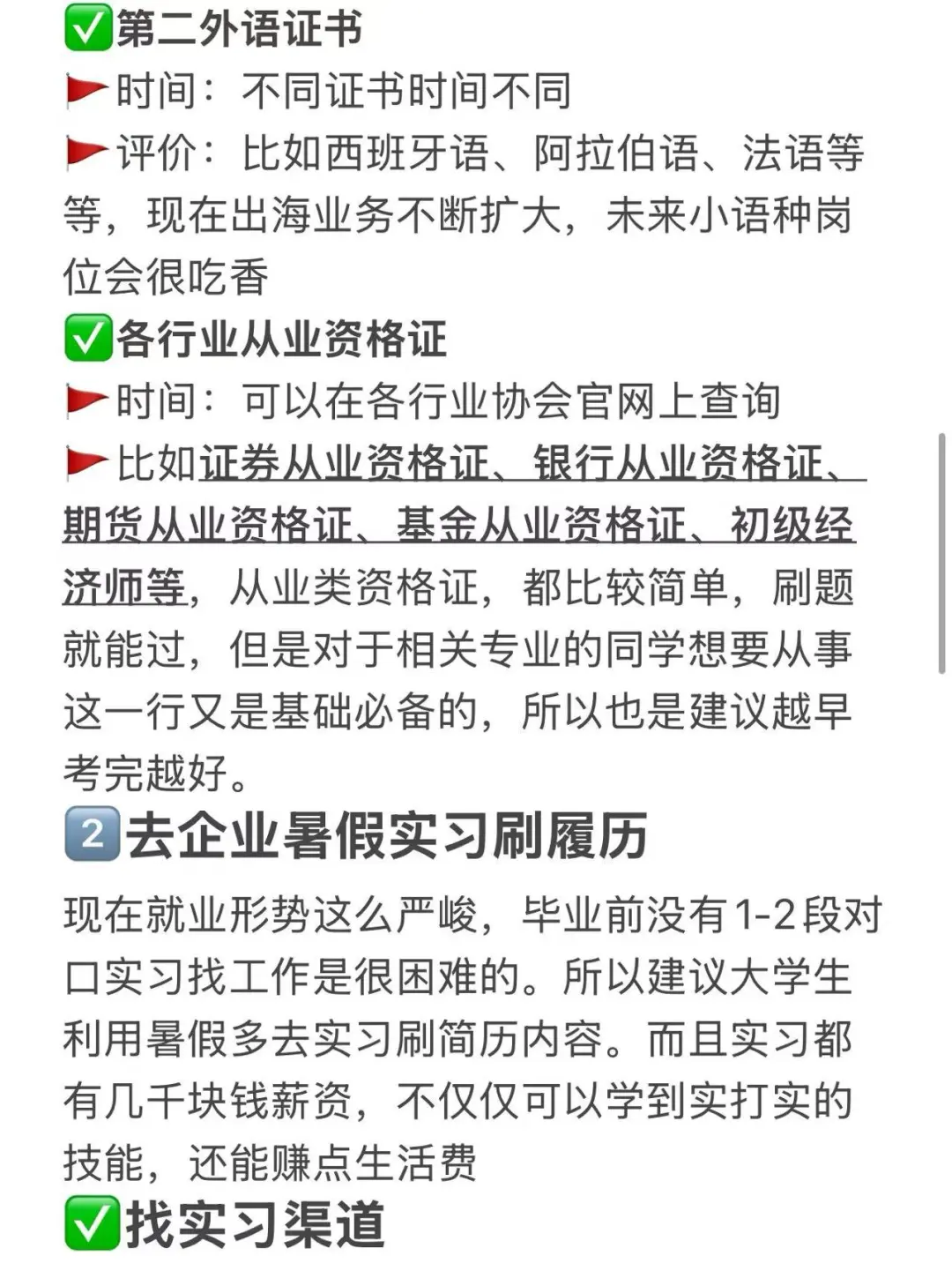 🚩第二,建议大家可以把雅思考一考:因为四六级其实是练不到英语口语的,要想实际应用英语还得是考雅思。雅思对于出国留学、去外企、各大出海公司、岗位都是很大加分项