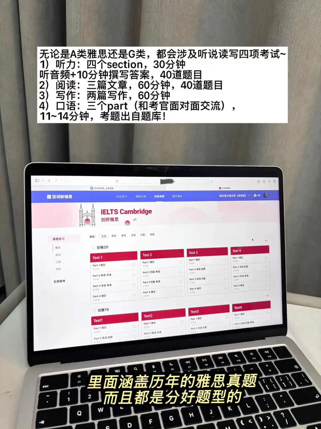 最后再做一下雅思真题和练习口语、作文等题库,基本上一套下来你对雅思备考也有个基础的了解了。到时候开学报考后准备起来更加轻松