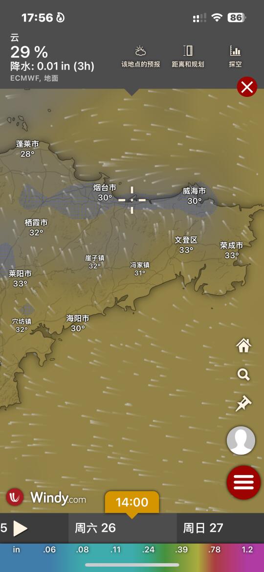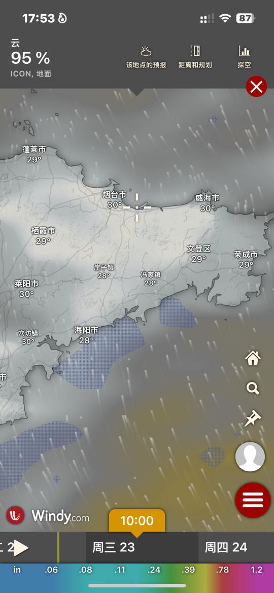 Hi.宝子们好,欢迎来烟台旅游观光!天气基本三天内准确度高!